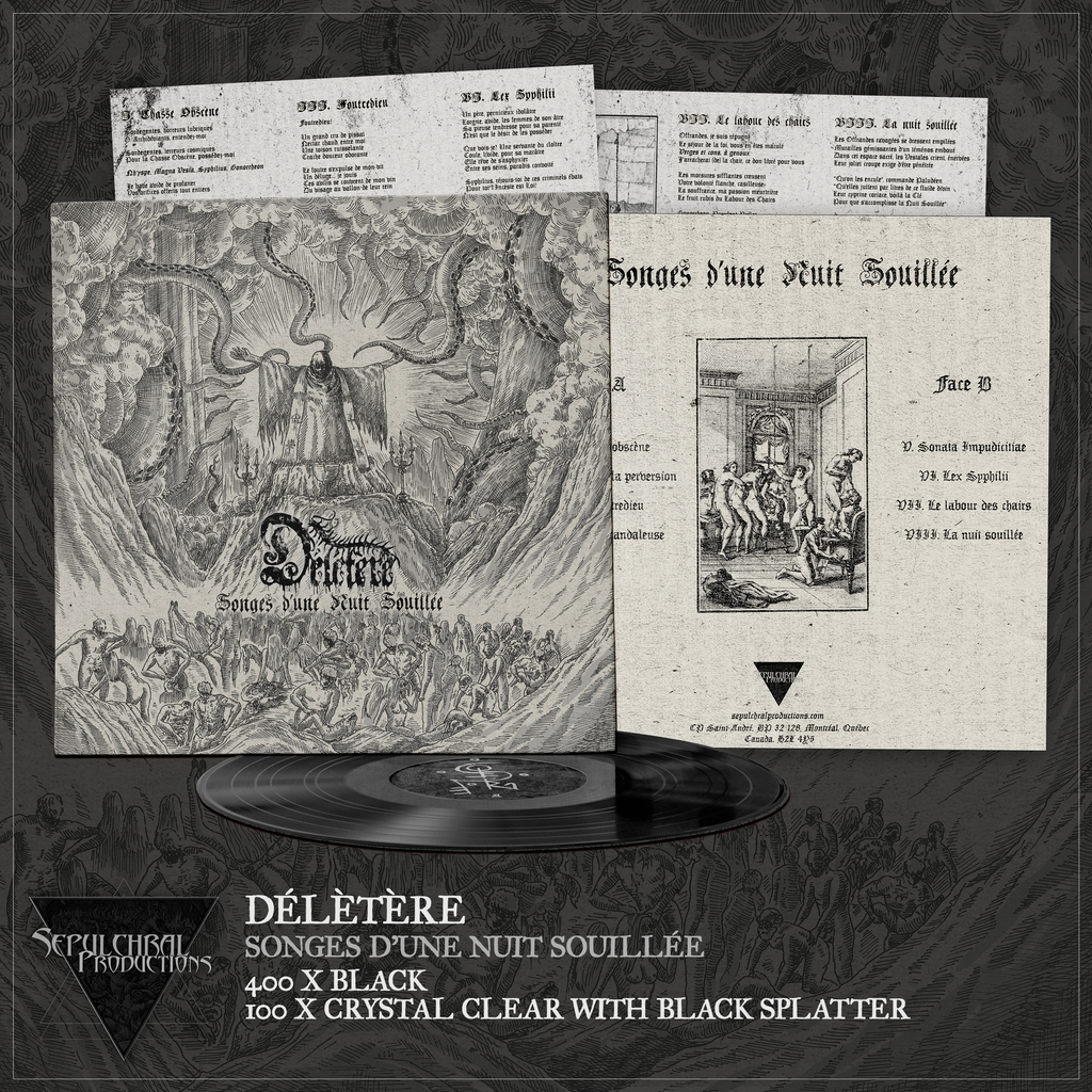 The disciples of pestilence are back with what is without a doubt their darker and most tortured offering yet. Songe d’une Nuit Souillée sees Délétère plunge into a never-ending pit of putrefaction, blasphemy and perversion. Musically, the outfit has hardened its tone to pummel listeners with a very dense breed of Black Metal, supported by hard-hitting drums, heavier than ever guitars, sinister choirs and, of course, Thorleif’s commanding voice. A striking tour-de-force from one of the leaders of Québécois Black Metal!