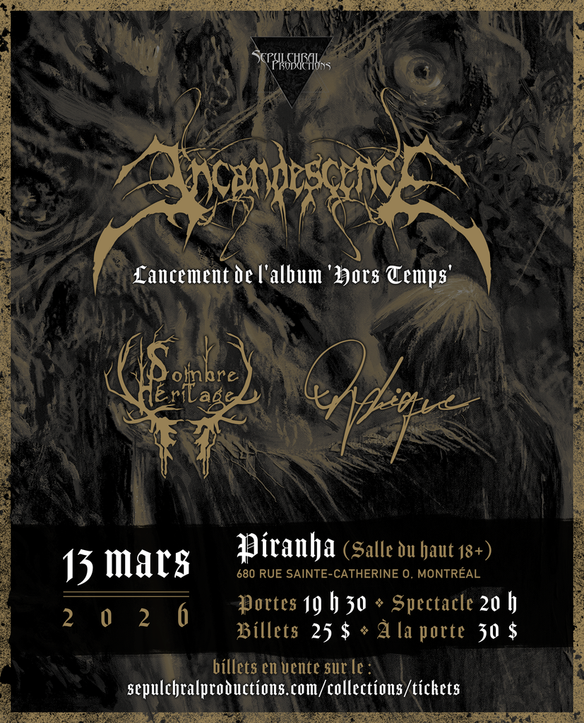- Incandescence (Montréal, release show for Hors Temps) - Sombre Héritage (Québec, first Montréal show in 2 years) - Orphique (Montréal)